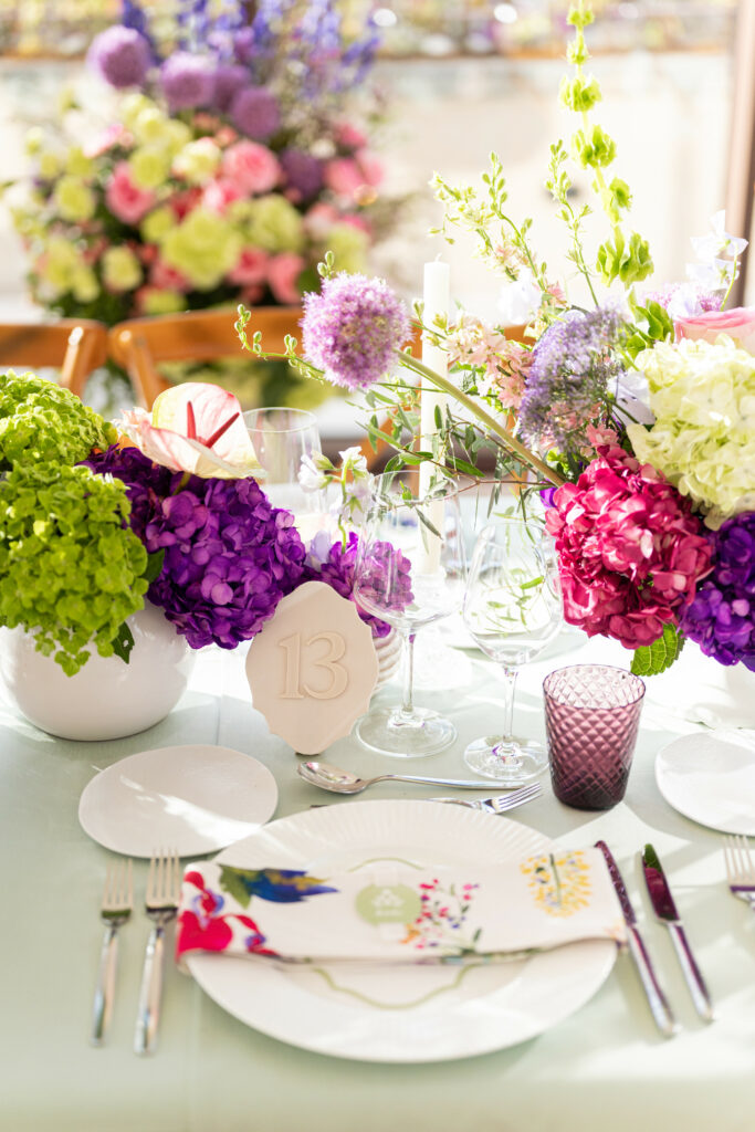 - Bespoke floral-patterned table linens, designed especially for the wedding.