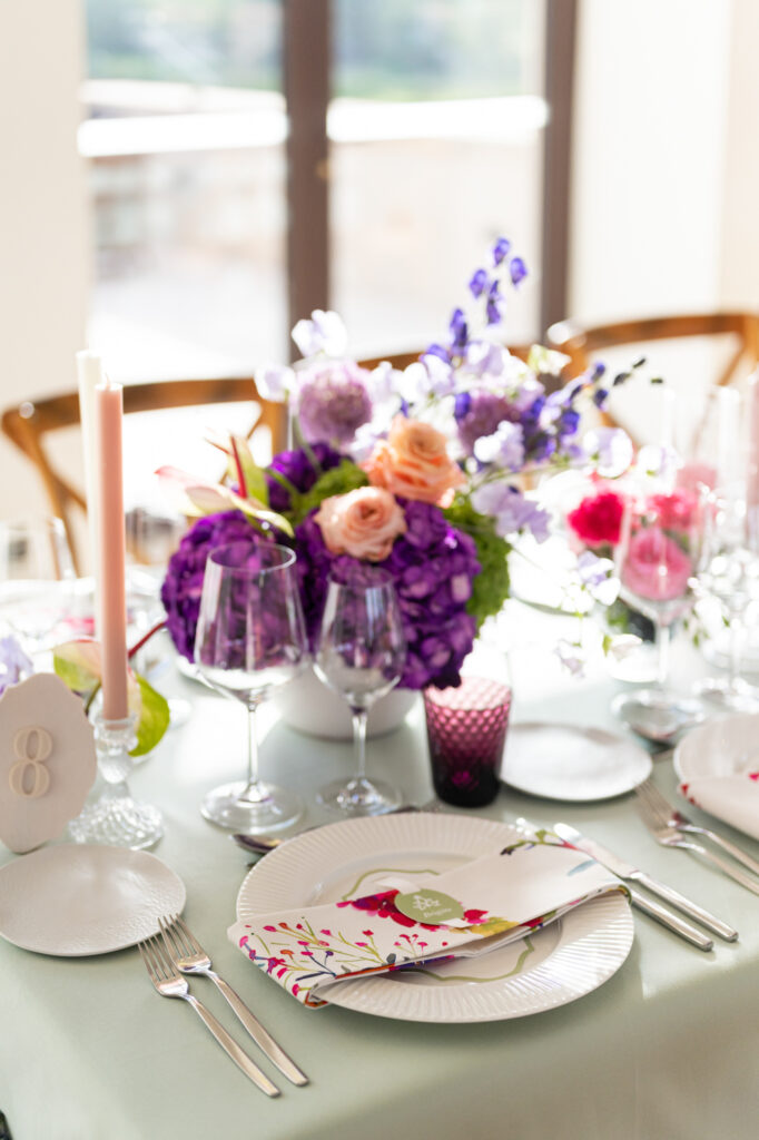 - Bespoke floral-patterned table linens, designed especially for the wedding.
